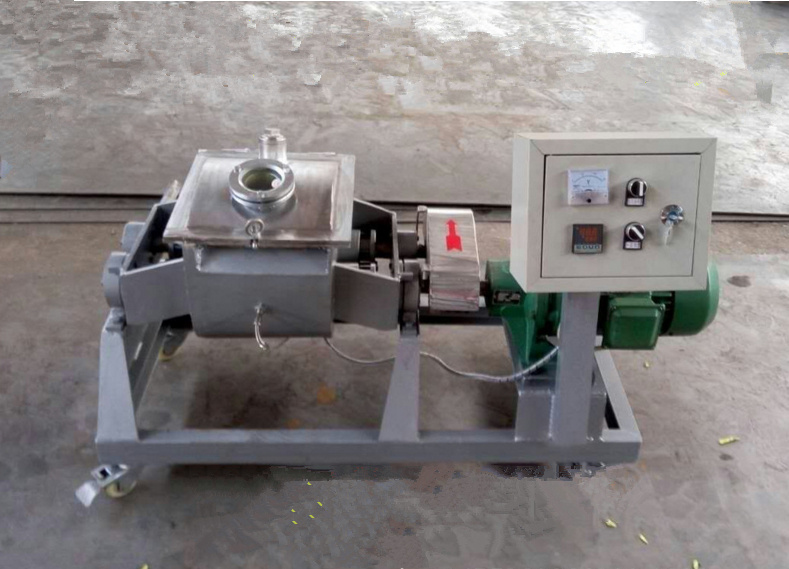 工作時由電機經(jīng)減速機傳動至主動槳,經(jīng)過走齒輪帶動從動槳,攪拌槳的螺旋葉帶動物料既作軸向擠壓,又作徑向擠壓,既作高速擠壓,又作低速擠壓;既作擠壓運動,又作分離運動,使物料經(jīng)過充分揉、搓、攙和、混合均勻,加速物料物理及化學(xué)反應(yīng)。