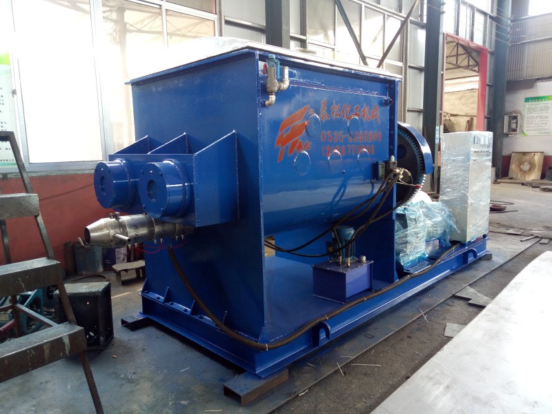 該種捏合機(jī)的出料經(jīng)螺桿把物料輸送出來,在操作過程中為了使螺桿中的物料處分得到充分?jǐn)嚢?,螺桿減速機(jī)和捏合機(jī)主電機(jī)應(yīng)同步運(yùn)轉(zhuǎn),但旋轉(zhuǎn)方向應(yīng)與出料的旋轉(zhuǎn)方向相反。捏合機(jī)內(nèi)的在充分?jǐn)嚢柚螅崖輻U尾部的出料堵板打開,把螺桿減速機(jī)的旋轉(zhuǎn)方向調(diào)到出料方向,向外輸送物料至輸送完畢。要及時清理粘附在螺桿及螺旋翅子上的物料,以免影響到下一道工序。